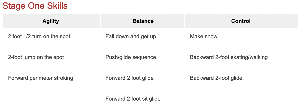 Once your child completes Pre-CanSkate they will move into Stage One. In this stage they will be introduced to basic skating skills that will form the building blocks for further development.